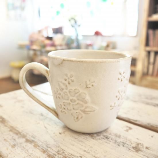 お花柄のマグカップです。