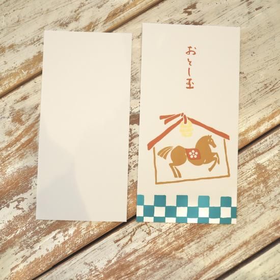 シルクスクリーンで印刷された午柄のぽち袋です。