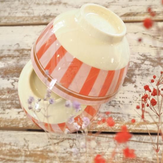 ボーダーストライプ柄のメラミンボウルです。
